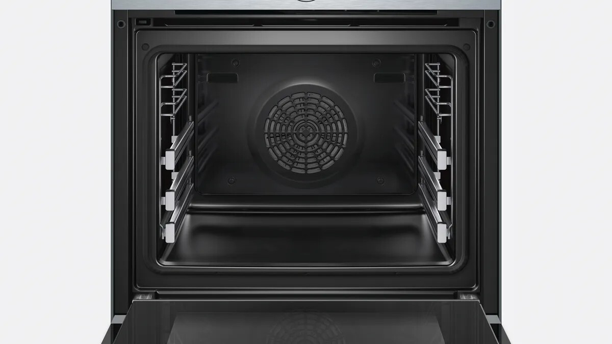 Духовой шкаф Bosch HBG632TS1 оснащен TFT-дисплеем на нем отображаются все режимы приготовления. Имеются 3х уровневые телескопические направляющие, для безопасного и удобного извлечения противней. Технология 4D горячий воздух обеспечивает равномерное распределяет нагрев на всех уровнях.