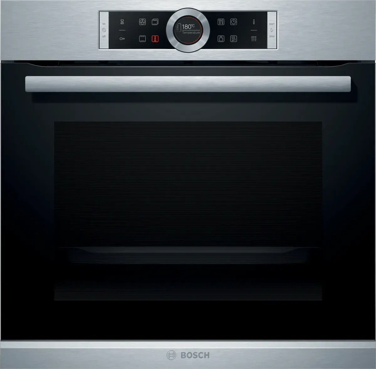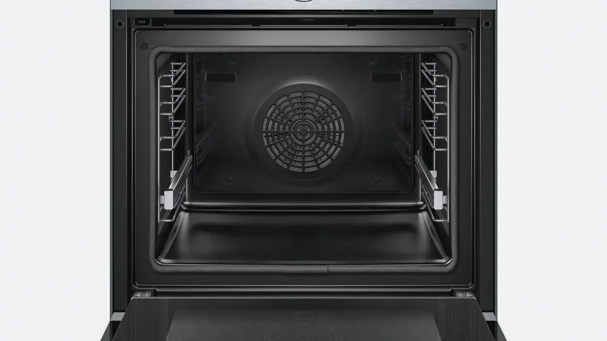Духовой шкаф Bosch HBG6750S1 оснащен пиролитической очисткой: загрязнения под действием высокой температуры сжигаются, а оставшийся пепел легко убирается влажной тканью. Во время очистки дверца духового шкафа блокируется, что повышает уровень безопасности. Переключатель Control Ring обеспечивает комфортное управление режимами и функциями. Блокировка панели управления предотвращает случайное включение.