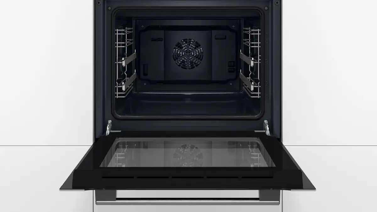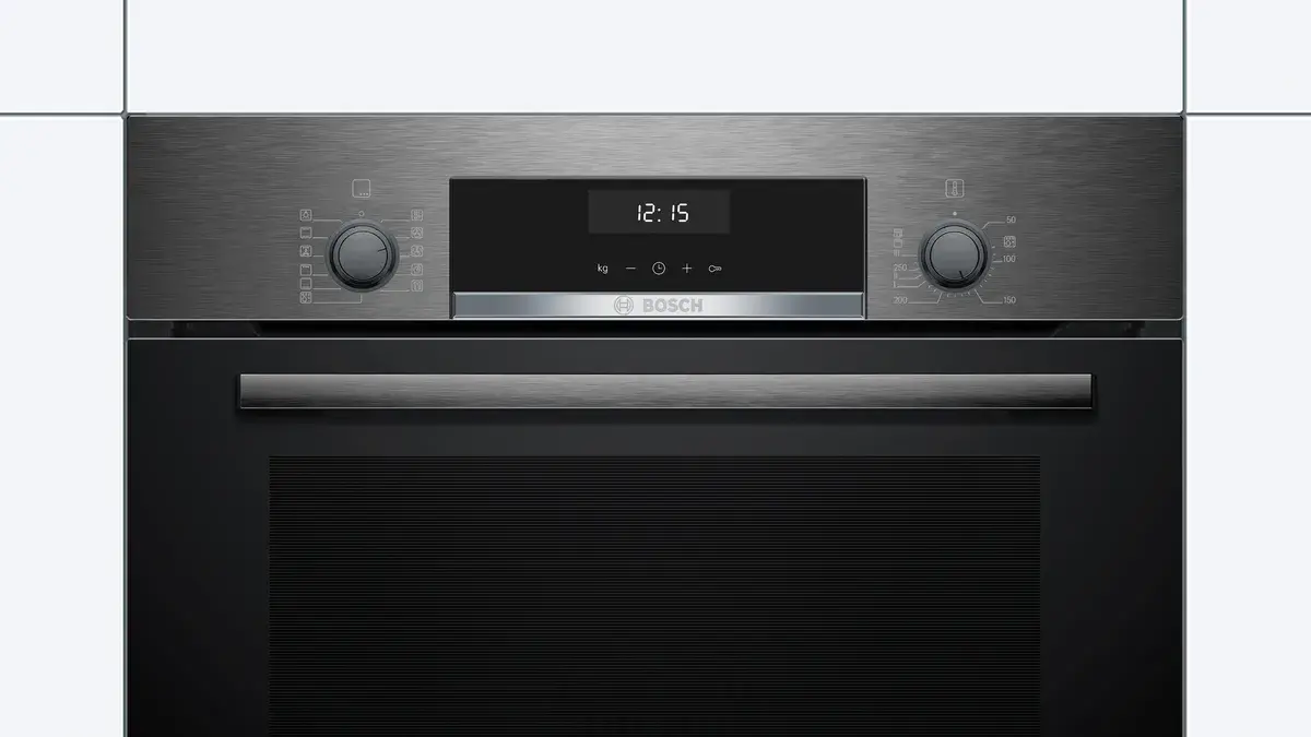 Духовой шкаф Bosch HBJ517SG0R оснащен 10 автоматическими программами, вы можете выбрать рецепт и устройство приготовит его за вас. Имеются телескопические направляющие на 2 уровнях, они помогут в безопасном и удобном извлечении противней. Управление осуществляется с помощью поворотных переключателей и LCD дисплея с сенсорными клавишами.