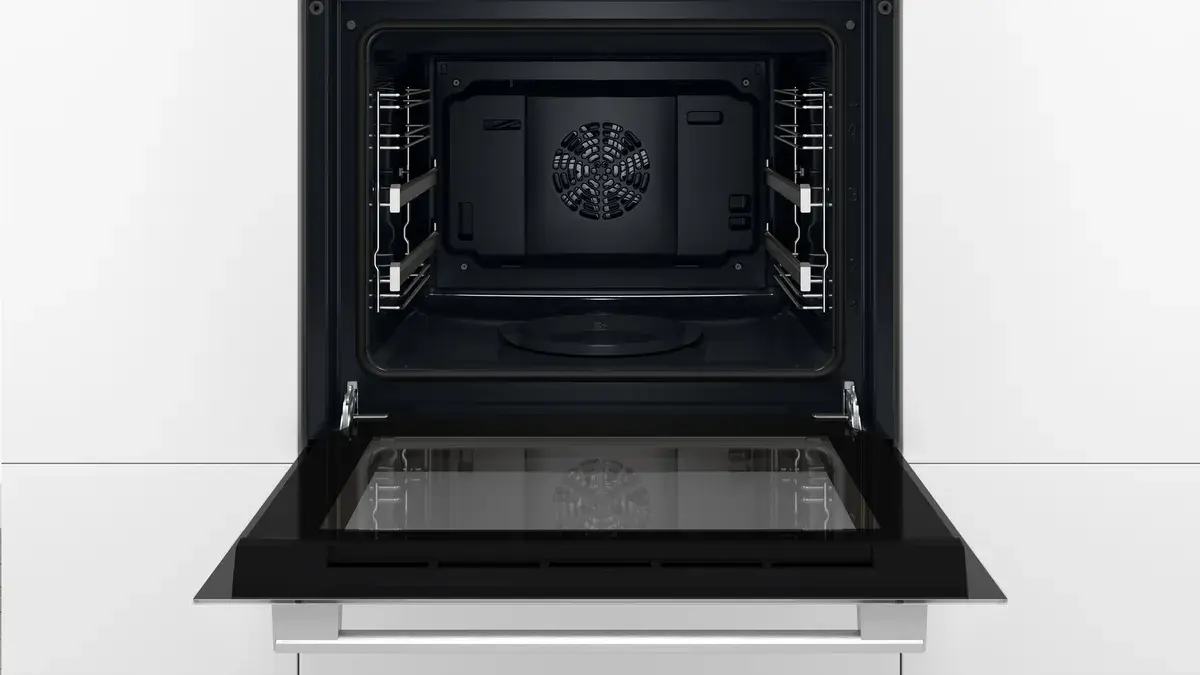 Специальный амортизатор SoftClose плавно закрывает дверцу без усилий и хлопка, створка приостановится перед закрытием, а затем закроется мягко и тихо. Благодаря плавно выдвигающимся телескопическим направляющим на 2 уровнях обеспечивается удобный доступ к блюдам. Данная модель в дополнение к универсальному противню имеет в комплекте два узких, на которых удобно печь пироги, делать запеканки и разогревать полуфабрикаты глубокой заморозки.